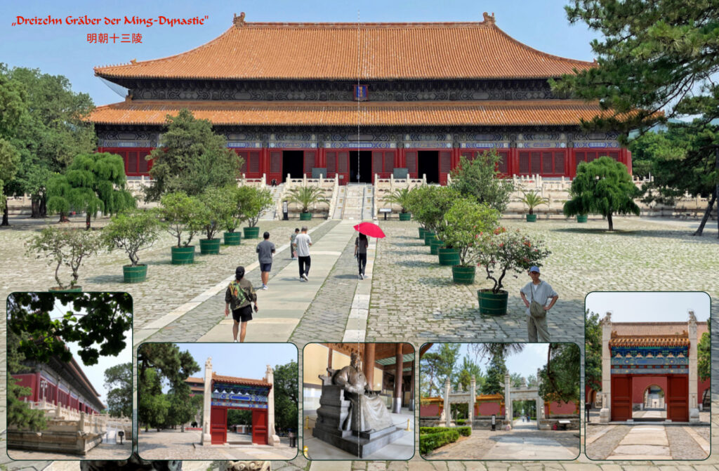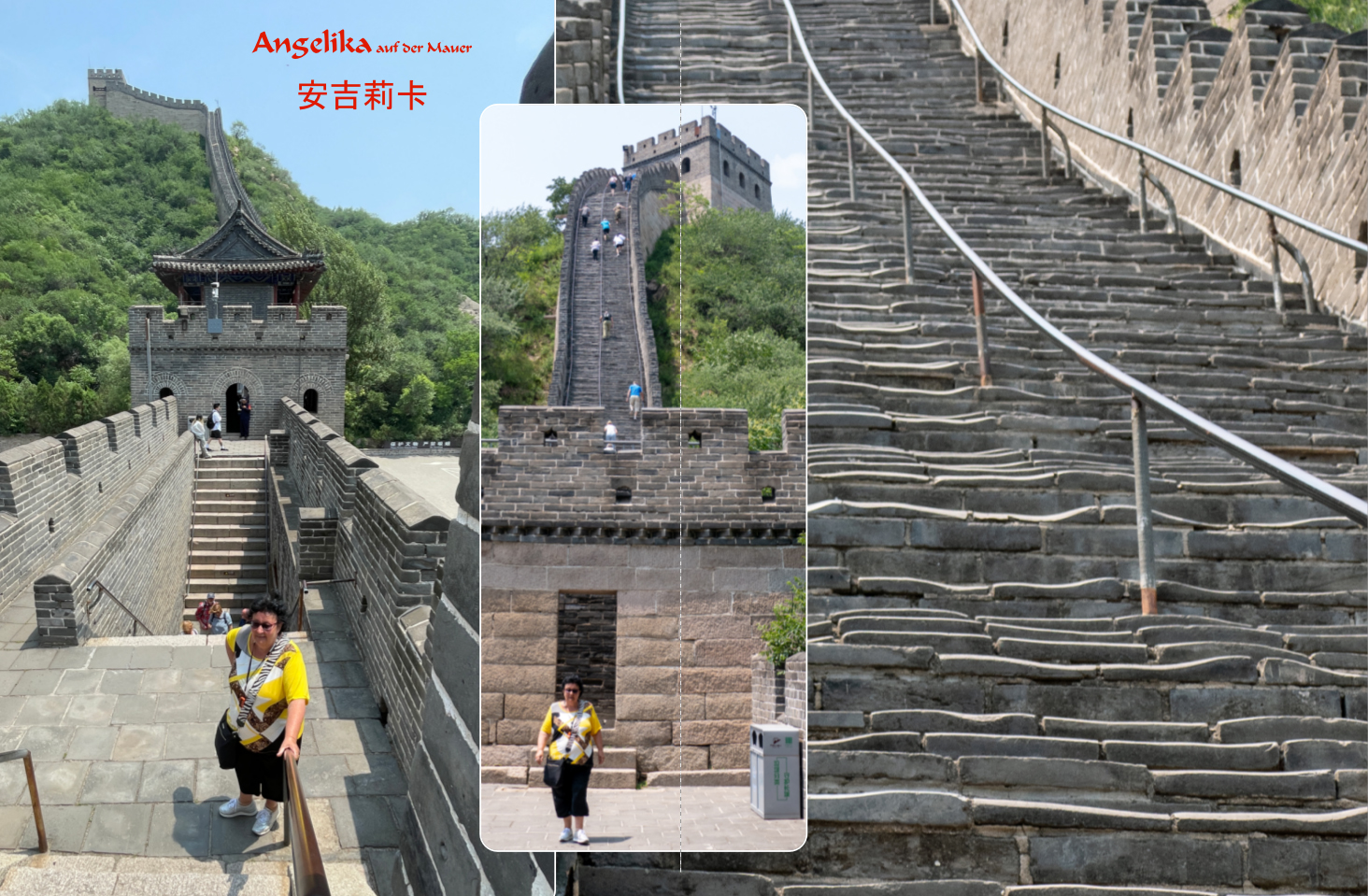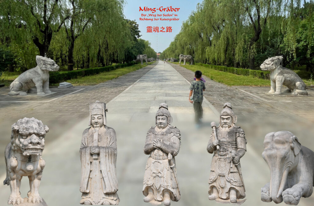 Der Tag ist gekommen, heute fahren wir zur Chinesischen Mauer, ein weiterer Wunschtraum geht in Erfüllung. Wir haben aber nicht mit unserem Reiseleiter gerechnet, zuerst mal wieder ein Tor und lange Wege zu laufen -> bei den Ming-Gräbern. Die Grabanlage beherbergt Grabmäler von Kaisern der Ming-Zeit. Wir schlendern gemächlich den „Weg der Seelen“ entlang, sie sollte dem toten Kaiser den Weg in das Himmelreich zeigen. Er ist gesäumt von Menschen- und Tierskulpturen, welche alle eine bestimmte Bedeutung haben, die Bedeutung der Einzelnen haben wir uns nicht gemerkt, es wurde einfach zu viel für meinen Kopf 😊.