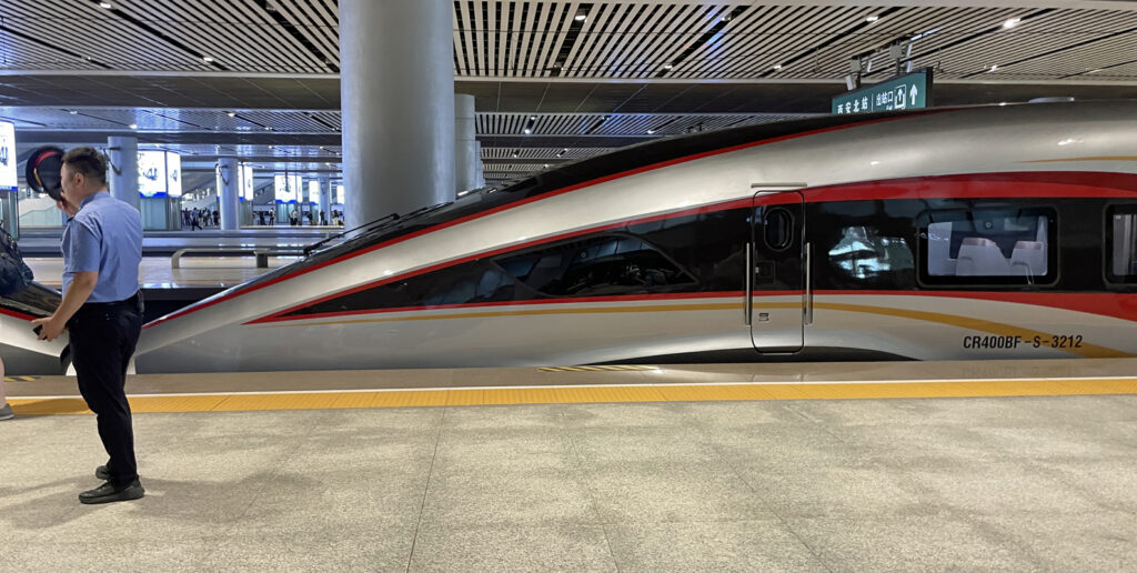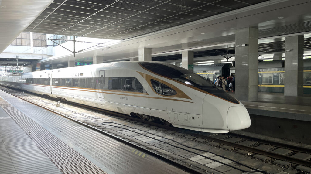 Jetzt geht es weiter mit dem schnellsten Hochgeschwindigkeitszug der Welt, in weniger als 4,5 Stunden in die Hauptstadt Peking. 1150 km mit 350 km/h.