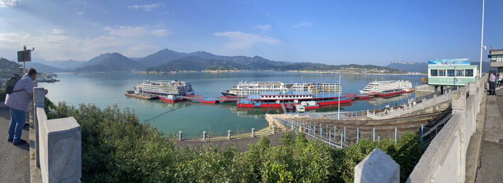 Heute Morgen, nach einer ruhigen Nacht in unserer Kabine und einem sehr reichlichen Frühstück unternehmen wir einen informativen Ausflug zum Drei-Schluchten-Staudamm mit dem größten Wasserkraftwerk der Welt und seiner gigantischen Hebetechnik für die Schiffe.