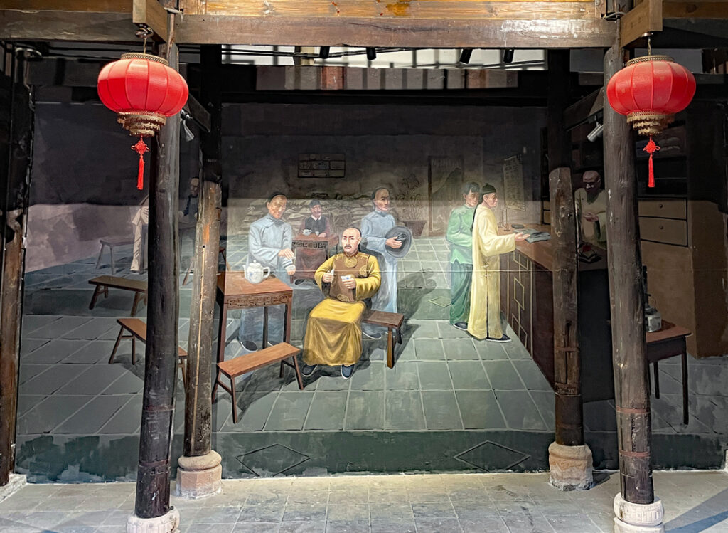 Nächster Halt in der quirligen Altstadt ist, bei dem aus der Ming-Zeit stammenden Yu-Garten. Hier bekommen wir einen Einblick in die traditionelle Gartenkunst. Über den Baumwipfeln und den mit Schnitzereien verzierten roten Holzhäusern sieht man ab und zu ein Hochhaus hervorragen.